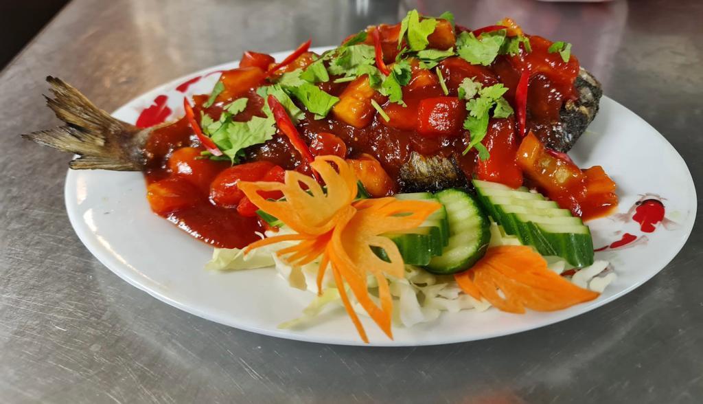 Pla Sam Rod (dorade met samrod saus met o.a. paprika)