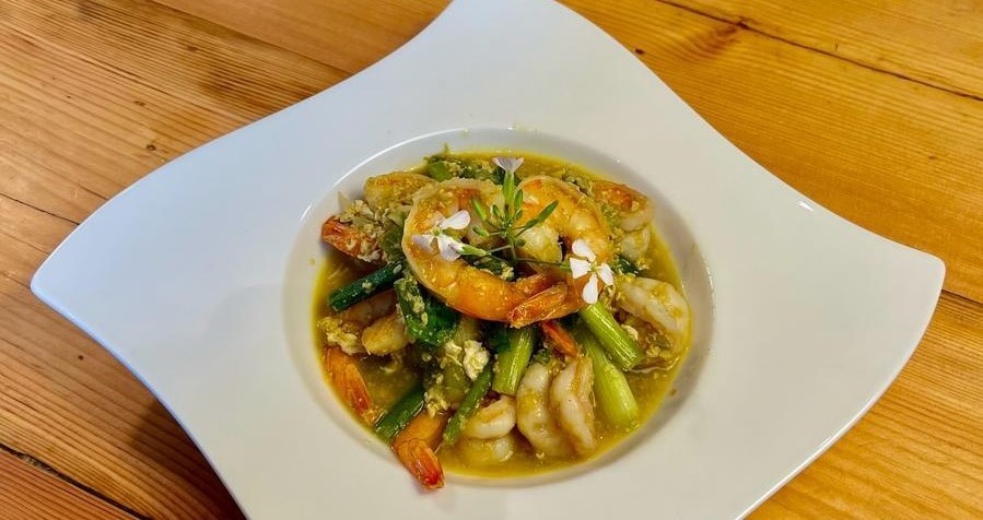 Phad Phong Ka Rhi (gele kerrie, ui, paprika en o.a selderij)