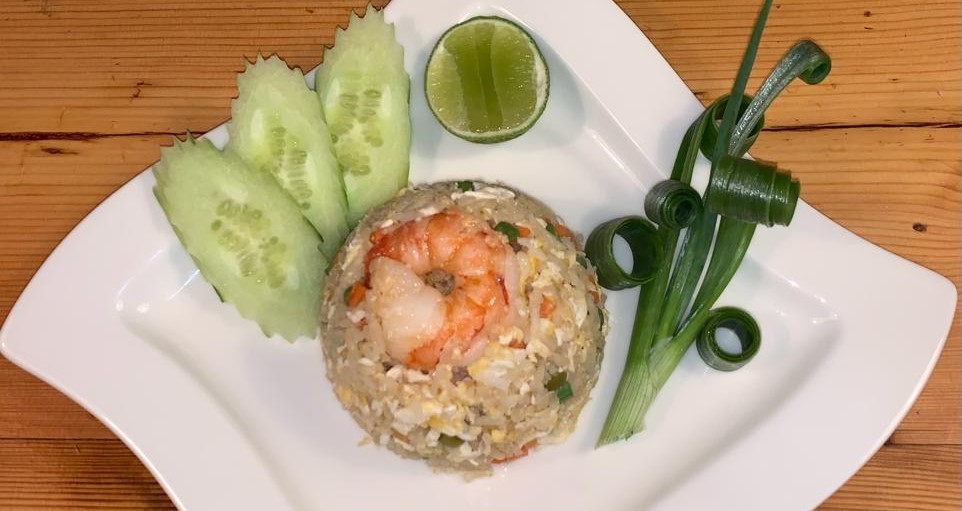 Khao Phad Koeng (garnalen, gebakkenrijst, ui en o.a. wortel)